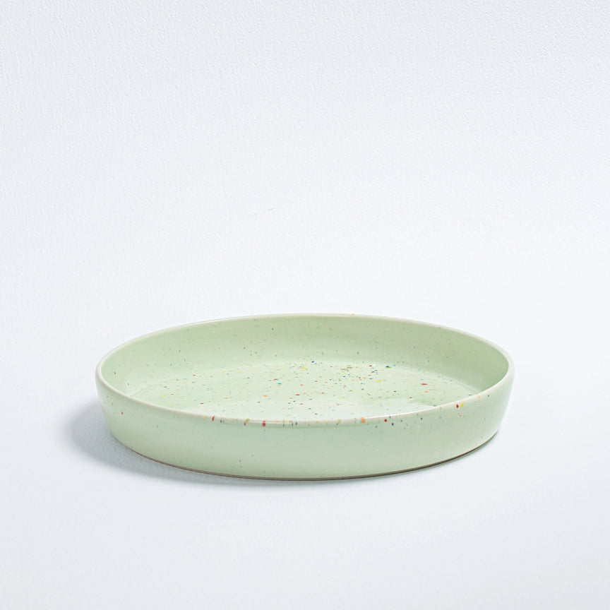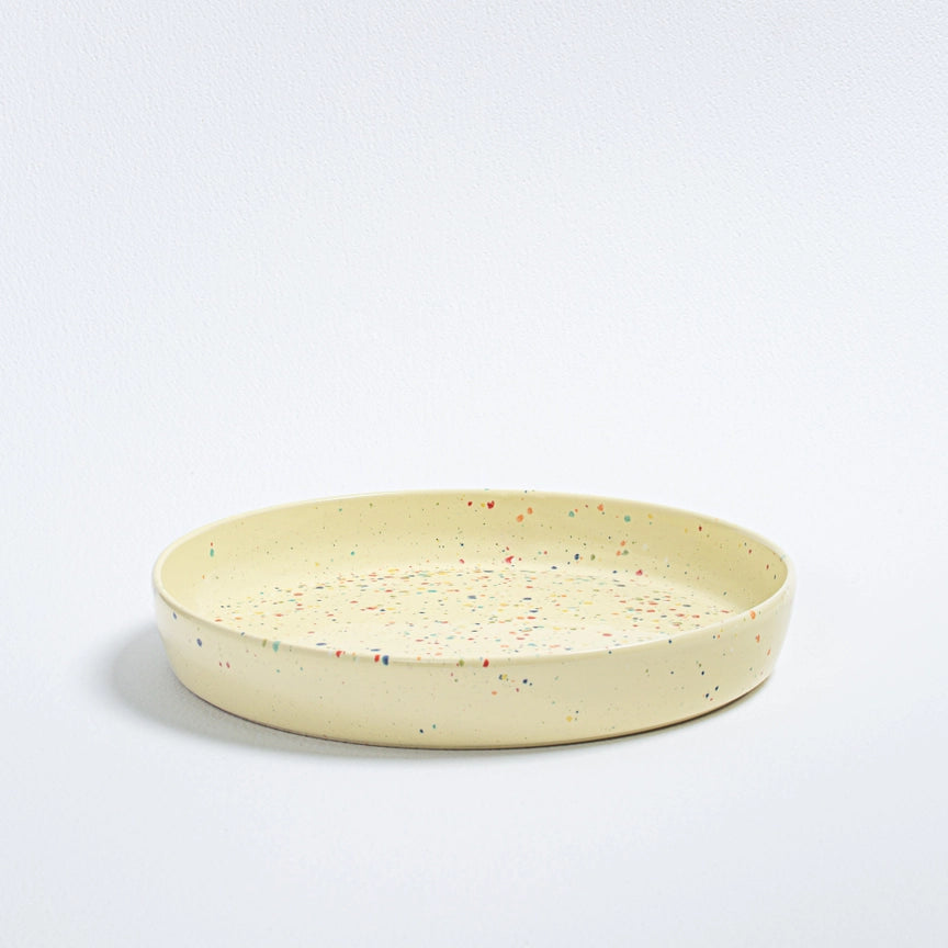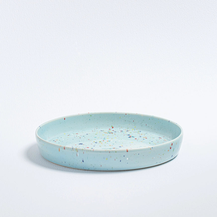 Besondere Aufmerksamkeit verdient die einzigartige Glasur, bei der sich Spritzer und Tupfen sanft verteilen und jedes Stück zu einem Unikat machen.
